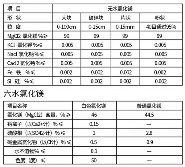 二、片狀無水氯化鎂,白片氯化鎂的參數(shù)